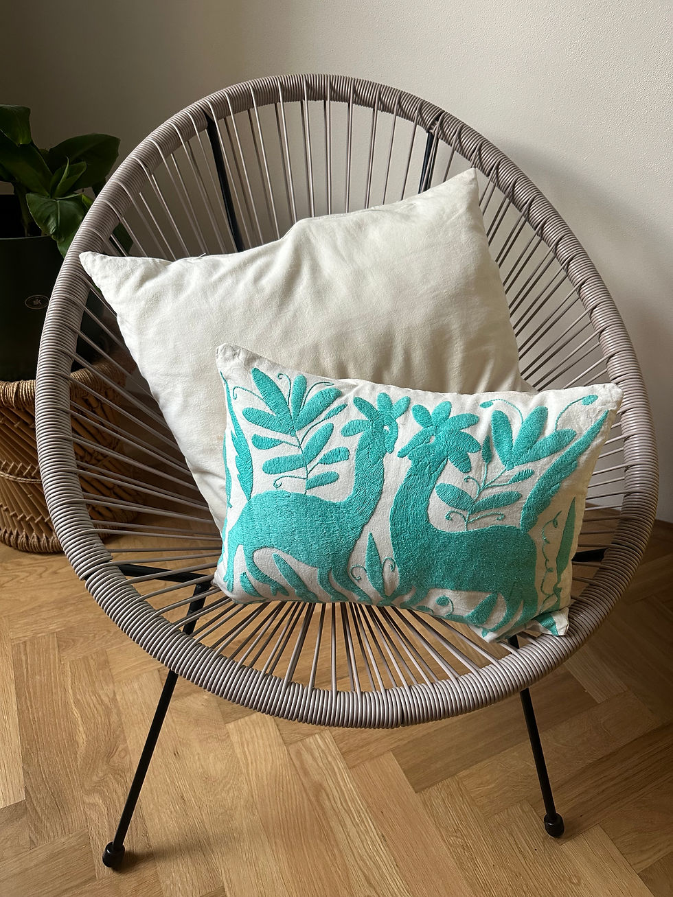 Ručně vyšívaný povlak na polštář od mexických indiánů Otomi. Tento originální kousek s jedinečnými vzory oživí váš interiér a dodá mu osobitý vzhled. Přesvědčte se, že staleté folklórní umění lze uplatnit v současném kontextu a vytvořit tak efektní kontrast v moderním interiéru.